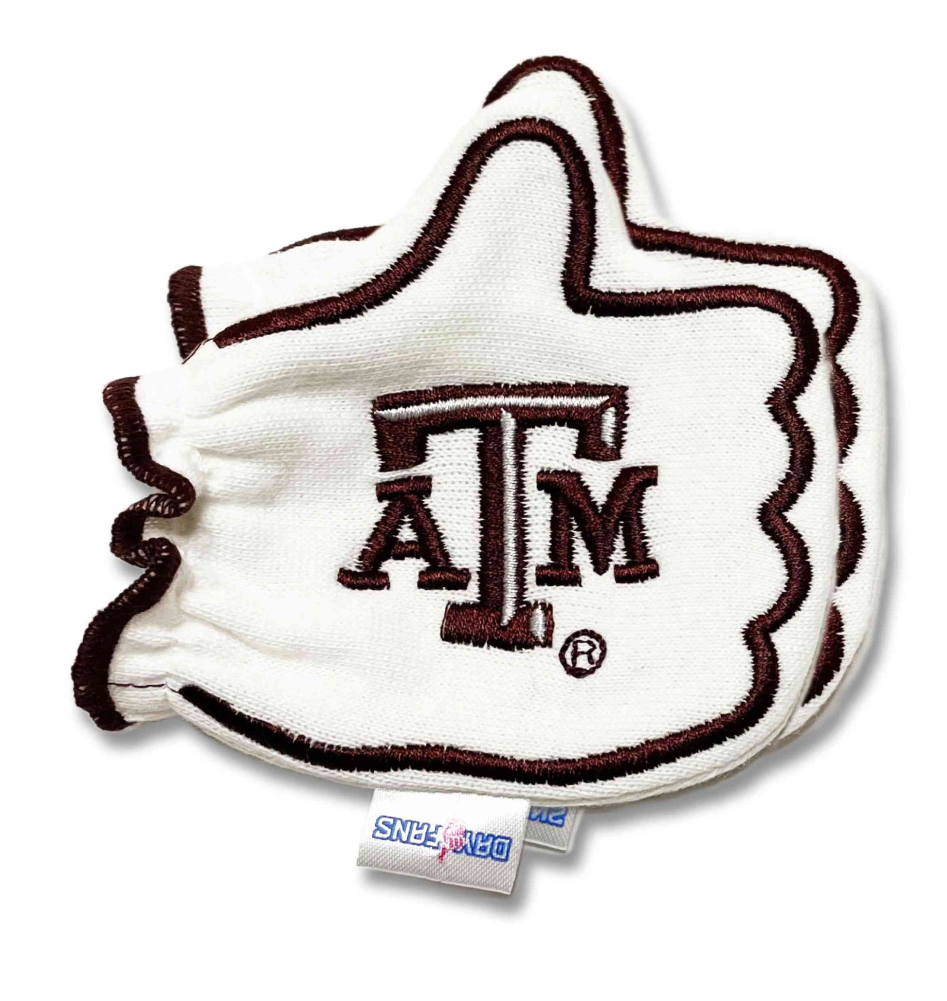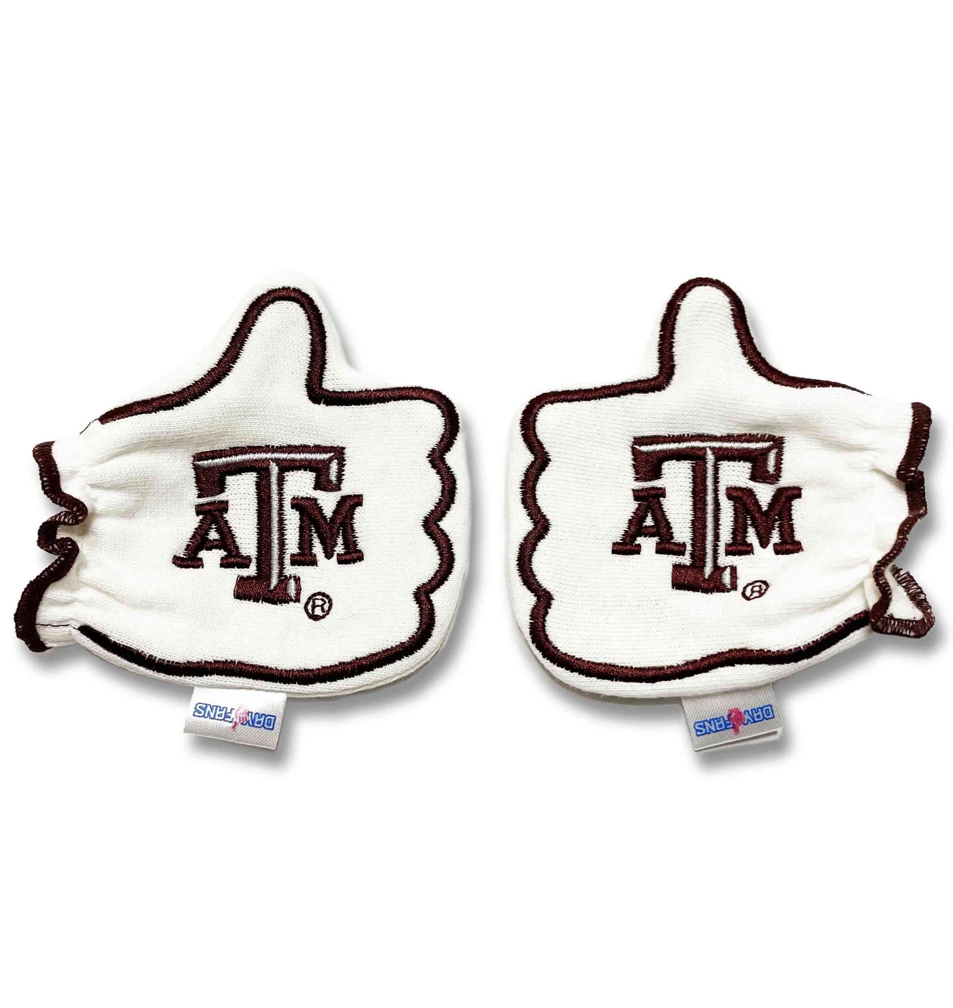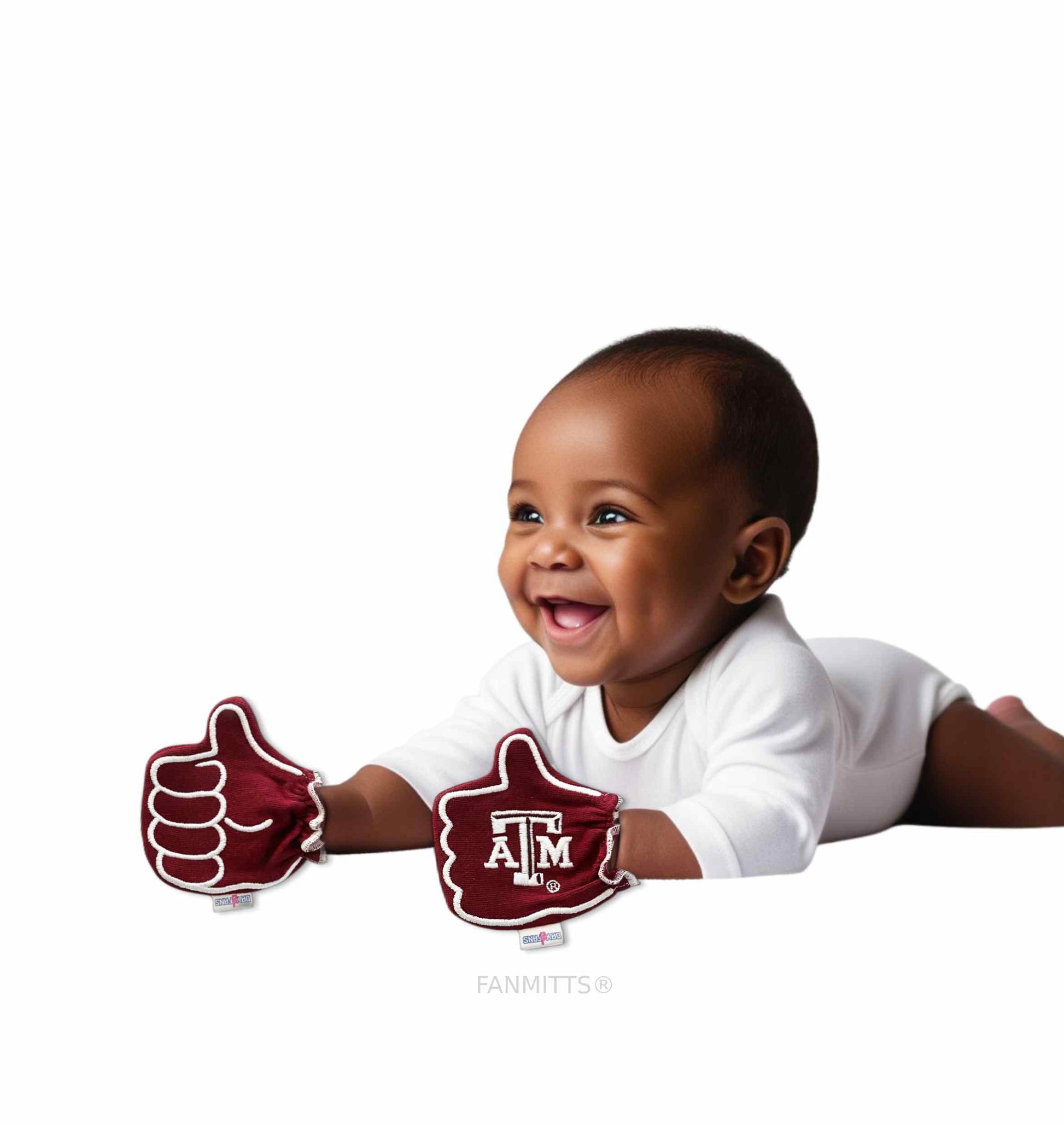 Show your school spirit with a pair of our Gig Em! FanMitts™ - the ultra-soft, stretchable, and breathable baby mittens that will prevent your lil' ones from scratching and rubbing, while keeping them cozy in any weather!