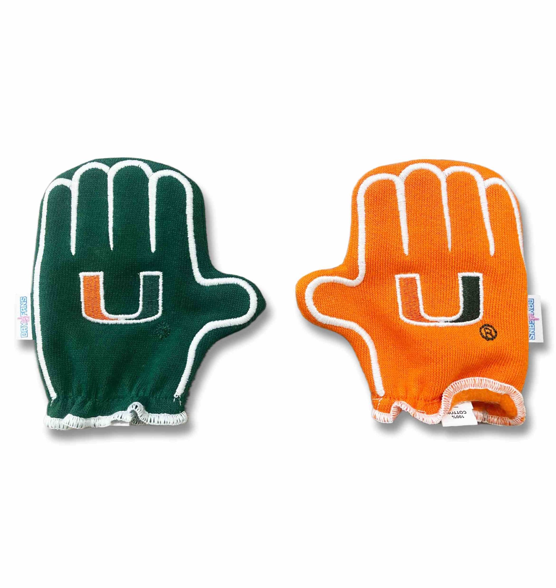 Show your school spirit with a pair of our Miami "U" FanMitts™ - the ultra-soft, stretchable, and breathable baby mittens that will prevent your lil' ones from scratching and rubbing, while keeping them cozy in any weather!