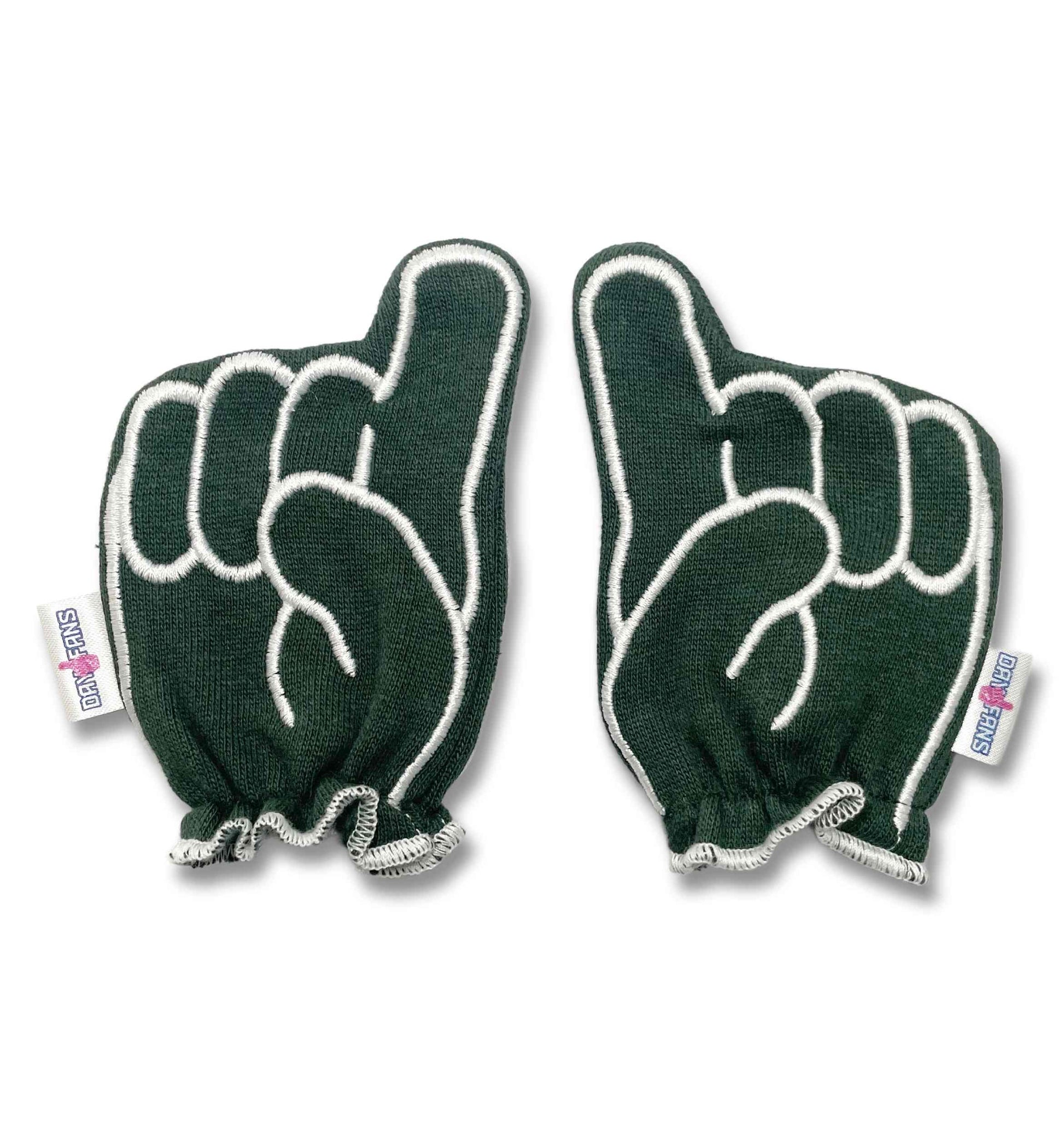 Show your school spirit with a pair of our Go Green! FanMitts™ - the ultra-soft, stretchable, and breathable baby mittens that will prevent your lil' ones from scratching and rubbing, while keeping them cozy in any weather!