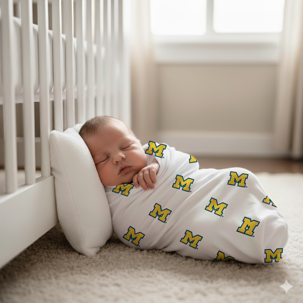 Perfect for swaddling, tummy time, or as a stroller cover, this versatile blanket is gentle on your baby’s skin while showing off your Michigan pride. Whether you’re a UM alum, a proud parent, or searching for the perfect baby gift, this swaddle is the ultimate way to cheer on the Wolverines from day one!
