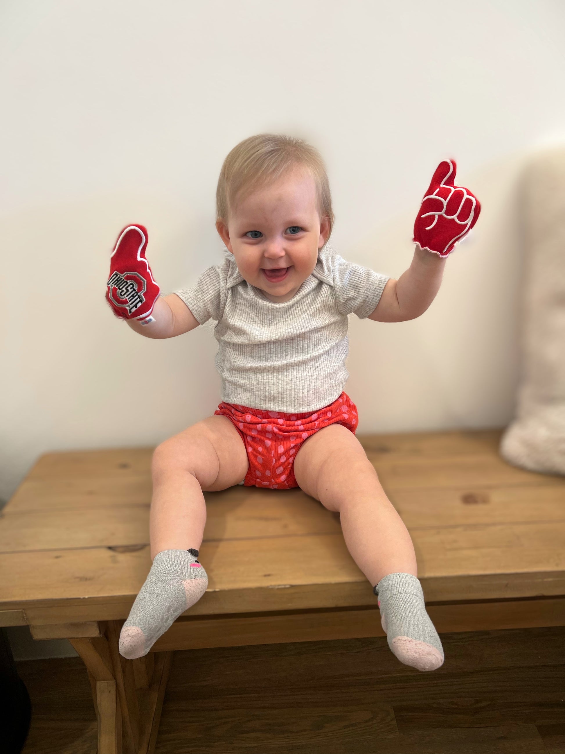 Show your school spirit with a pair of our O-H-I-O! FanMitts™ - the ultra-soft, stretchable, and breathable baby mittens that will prevent your lil' ones from scratching and rubbing, while keeping them cozy in any weather!