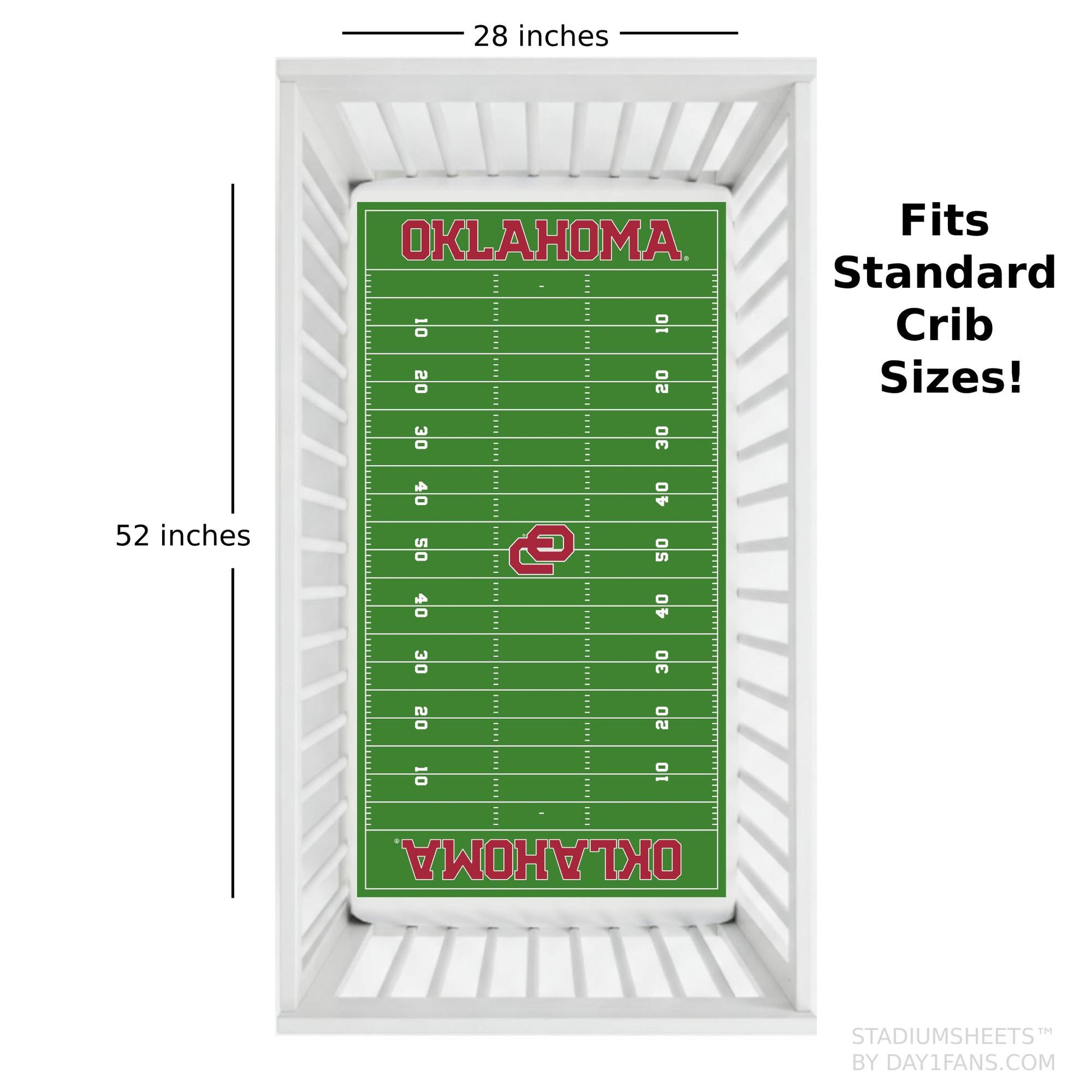 Our Oklahoma Sooners StadiumSheets fit standard cribs.
