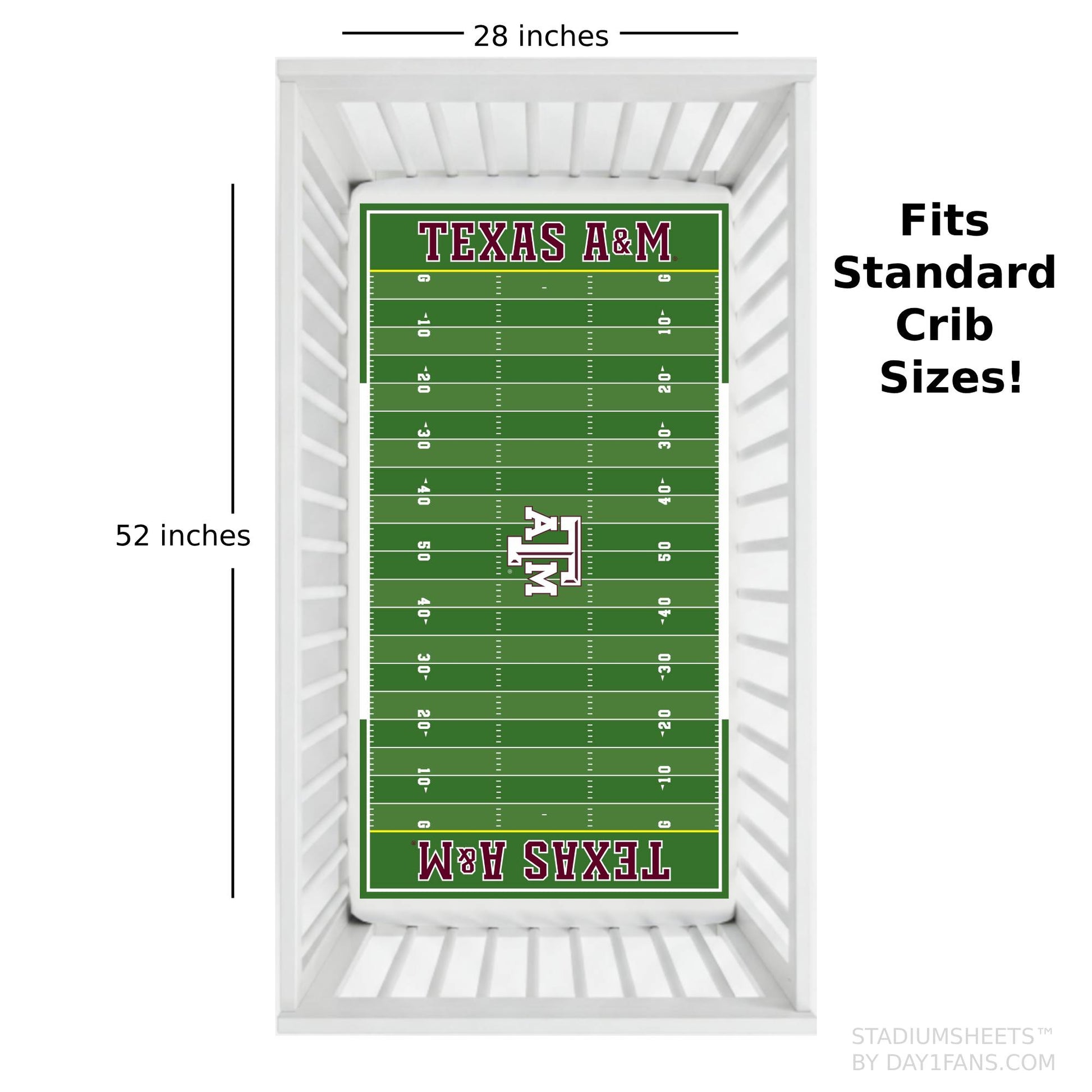 Our Texas A&M Aggies StadiumSheets fit standard cribs.